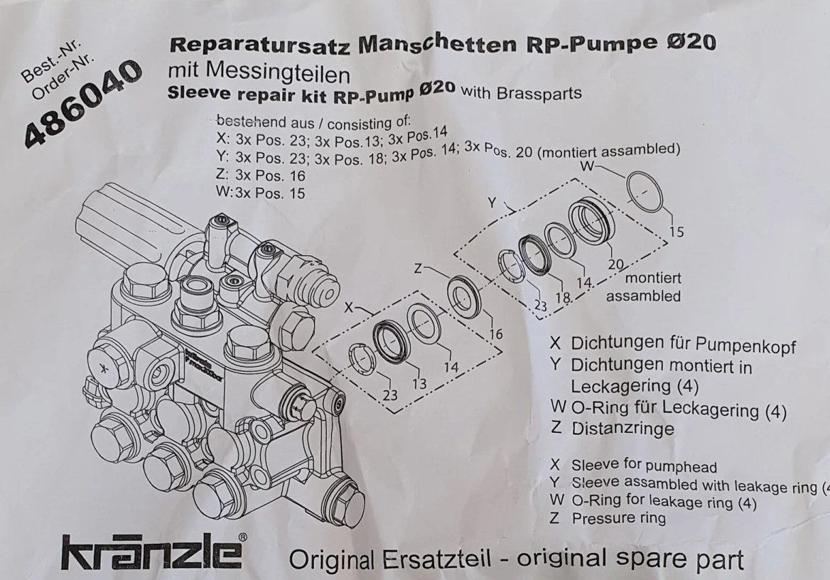 Reparatur Satz Manschetten 20 mm (48.6040) RP-Pumpe mit Messingteile
